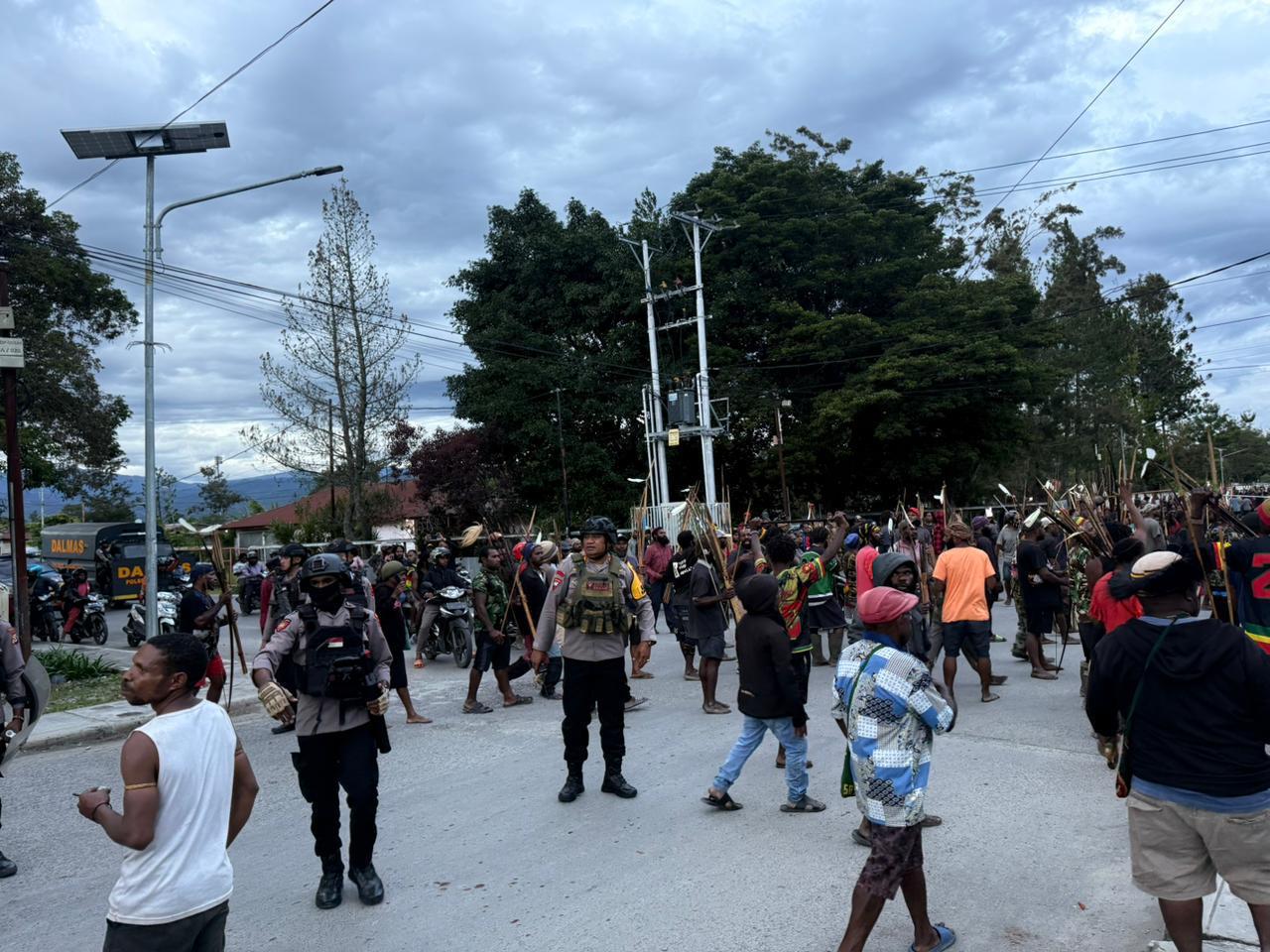 Menindaklanjuti situasi tersebut, personel Polres Jayawijaya bersama Brimob yang dipimpin langsung oleh Kapolres Jayawijaya bergerak cepat ke lokasi kejadian. Pada pukul 18.06 WIT, aparat keamanan berhasil melerai dan mengendalikan massa yang bertikai, sehingga situasi dapat dikondisikan dan tidak meluas.