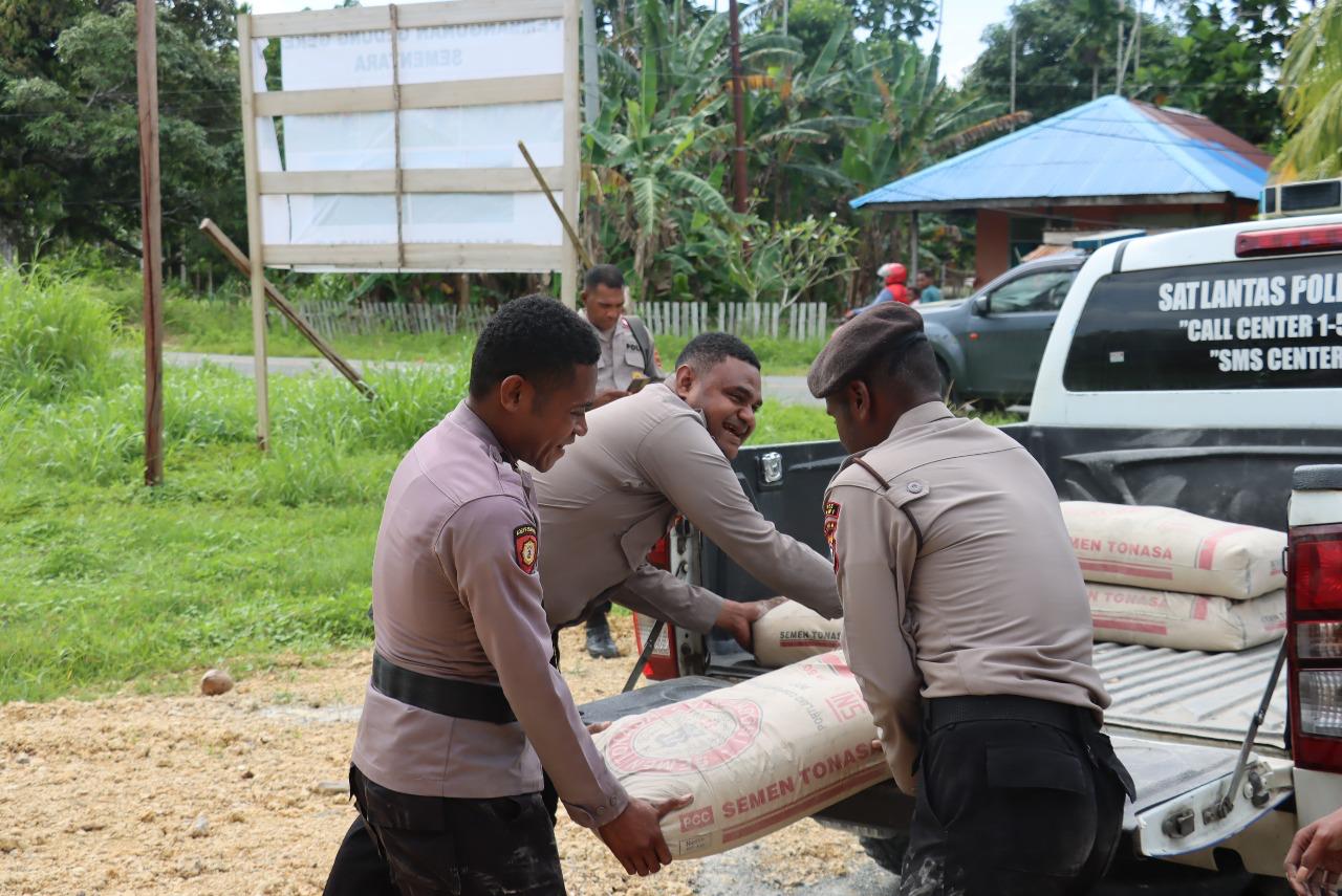 Sarmi – Menyambut perayaan Natal Tahun 2025, Polres Sarmi kembali menggelar kegiatan bakti sosial di Kampung Bagaiserwar, Jum’at (12/12/25). Dalam kegiatan ini, Polres Sarmi menyalurkan bantuan material berupa semen dan paku untuk mendukung pembangunan gereja sementara bagi jemaat setempat.