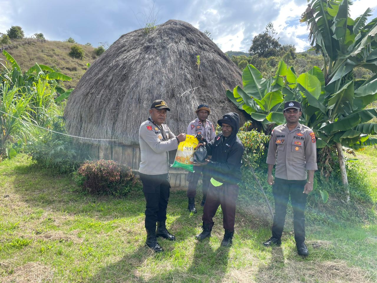 Kunjungan dilakukan di kediaman Kepala Suku Adat Wilaya Omarekma dan Balima, Sdr. Marinus Tabuni. Dalam kesempatan itu, Kapolsek bersama anggotanya memberikan bantuan berupa beras, gula, dan kopi sambil berdialog seputar situasi kamtibmas di wilayah tersebut.