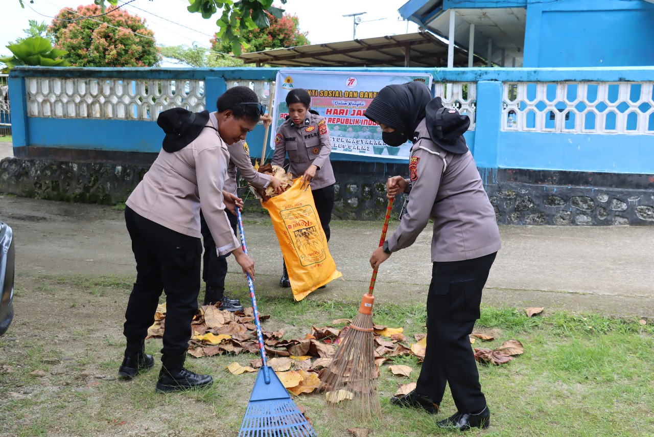 Dalam kegiatan tersebut, para Polwan Polres Sarmi menyerahkan bantuan berupa sembako, sekaligus melaksanakan kerja bakti membersihkan lingkungan rumah ibadah bersama para jemaat gereja dan jamaah masjid.