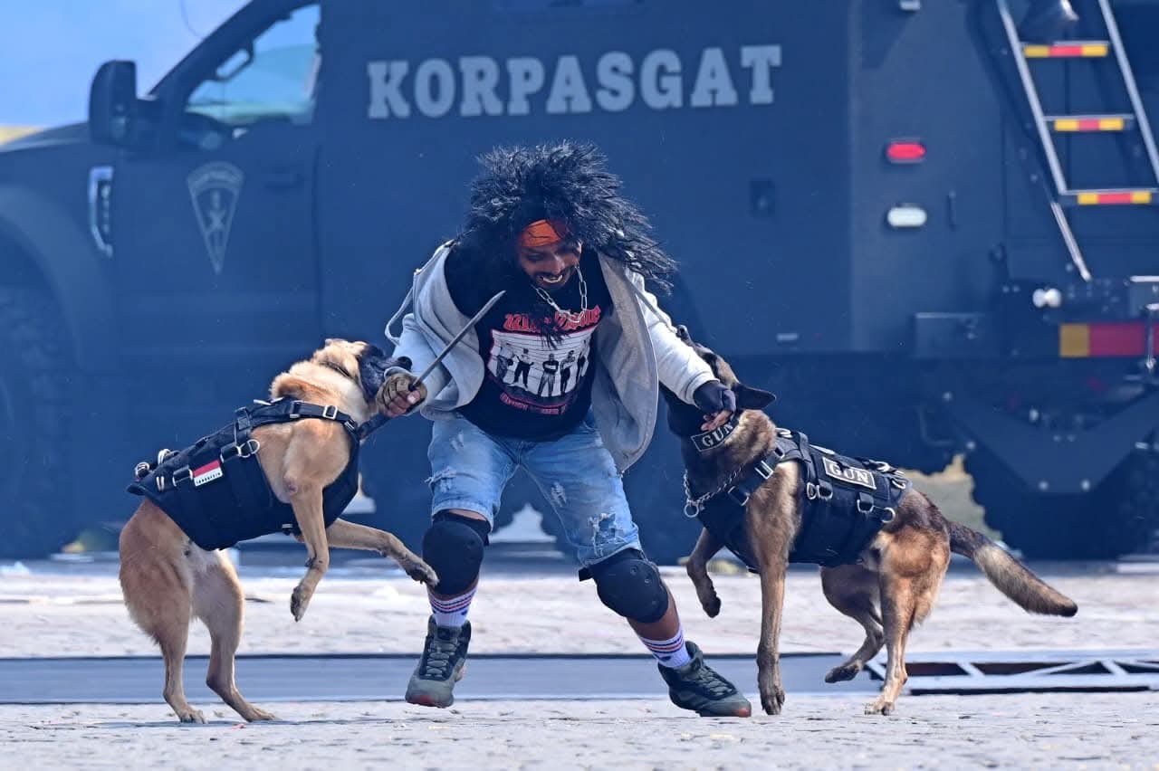Defile kemudian dilanjutkan dengan pameran kekuatan alat utama sistem senjata (alutsista) yang menampilkan 1.047 peralatan pertahanan modern, antara lain kendaraan tempur, artileri medan, drone, kapal cepat, dan pesawat udara. Keikutsertaan alutsista buatan dalam negeri menjadi bukti kemandirian bangsa di bidang pertahanan sekaligus komitmen TNI mendukung kemajuan industri strategis nasional.