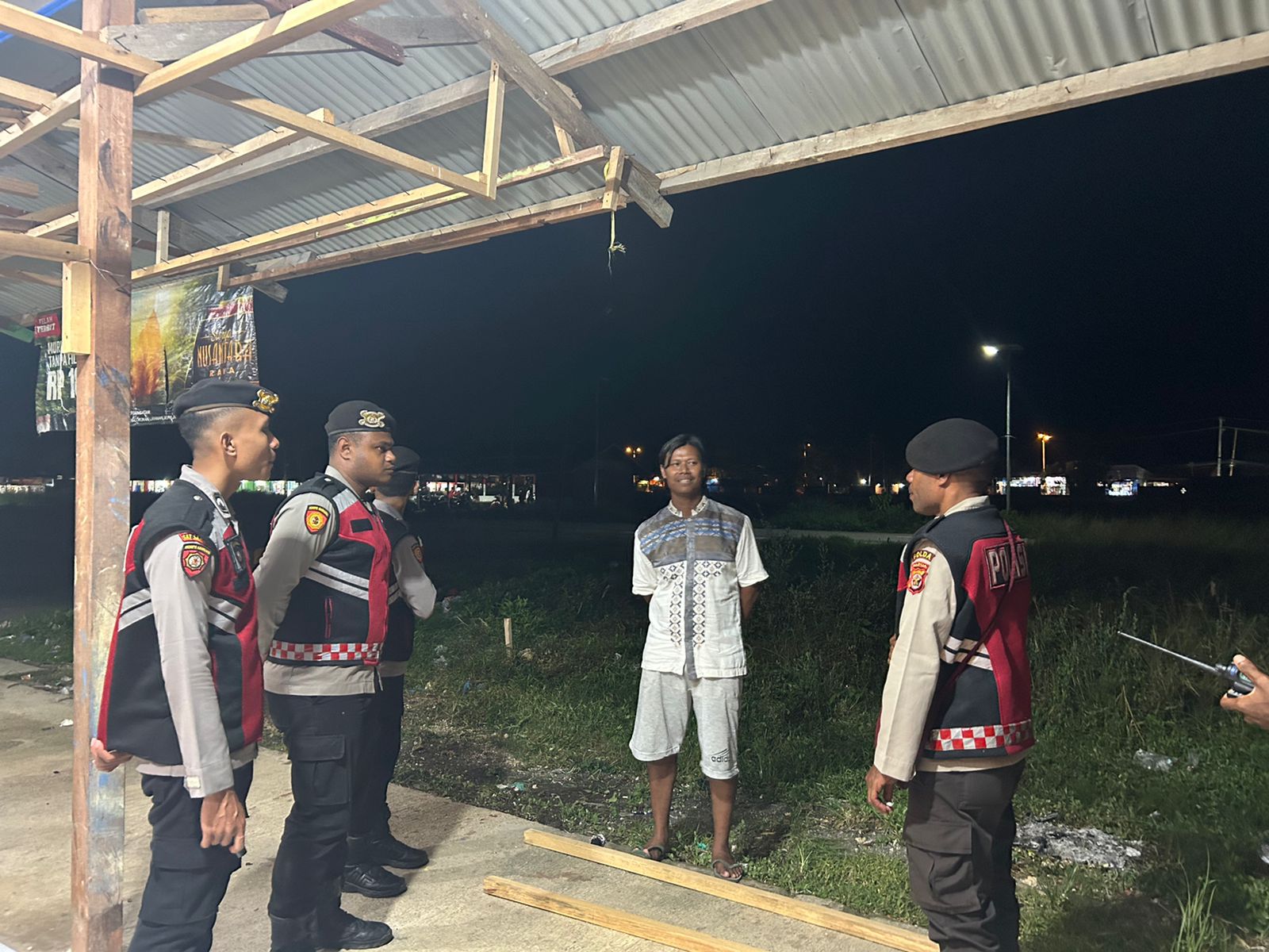 Sarmi – Dalam upaya menjaga keamanan dan ketertiban masyarakat, KBO Sat Samapta Ipda Antonius Arwanto Hubi memimpin langsung Personil Pos Shelter Patroli Perintis Sat Samapta Polres Sarmi dalam kegiatan patroli malam rutin di kawasan Pasar Sentral Mararena, Kabupaten Sarmi, Kamis (13/11/25) malam. Patroli ini dilakukan untuk memastikan aktivitas masyarakat pada malam hari tetap berlangsung dalam situasi aman dan kondusif.