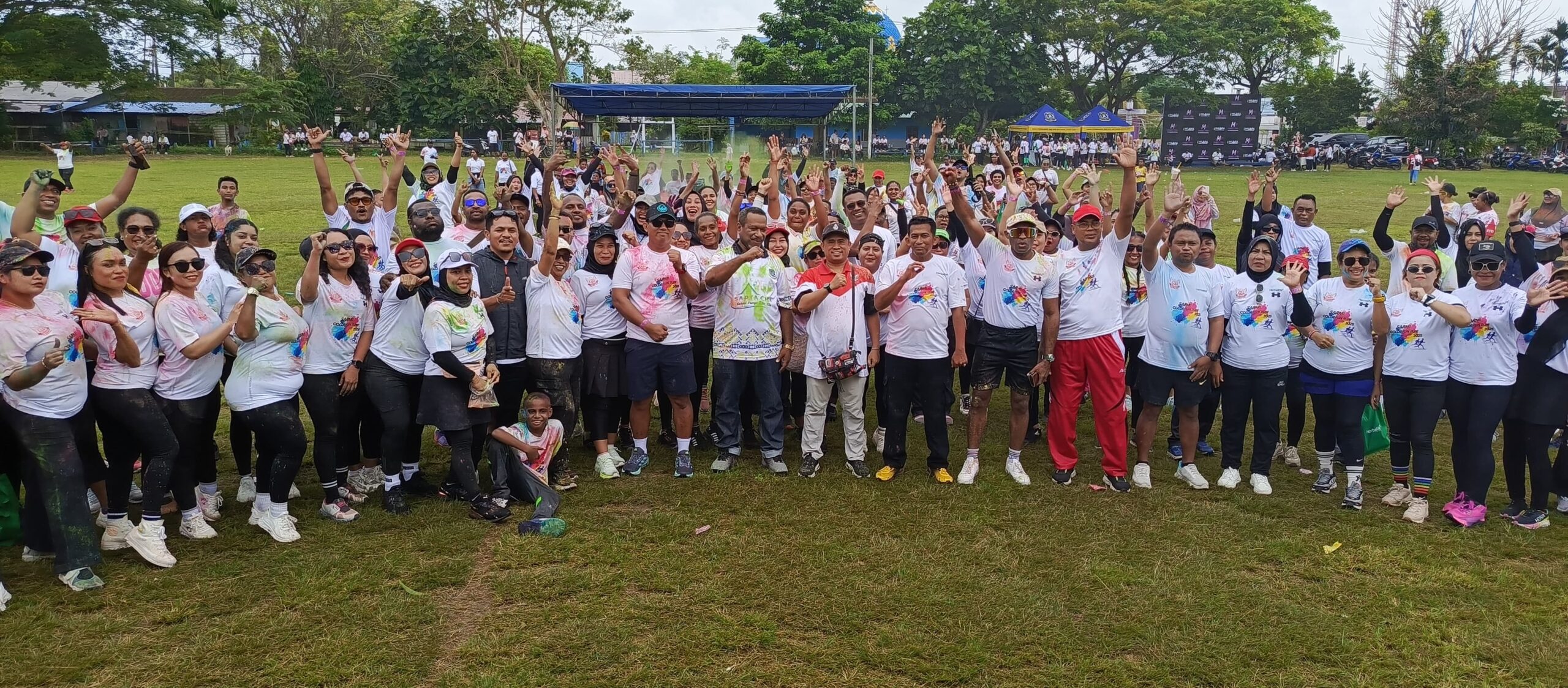 Sarmi – Dalam rangka memperingati Hari Sumpah Pemuda ke – 79 tahun 2025, Kabag SDM Polres Sarmi AKP Fainal Saputra, S.H turut ambil bagian dalam kegiatan Color Fun Run yang digelar di Lapangan Merdeka Sarmi dengan mengusung tema “Pemuda Sarmi Bersatu, Maju Bersama dalam Bingkai Sapta Cita.”