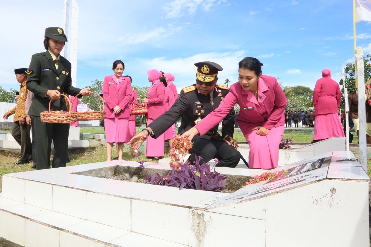 Suasana hening dan penuh haru menyelimuti prosesi tersebut, diiringi doa bersama agar arwah para pahlawan diterima di sisi Tuhan Yang Maha Esa dan perjuangan mereka menjadi teladan abadi bagi generasi penerus bangsa.