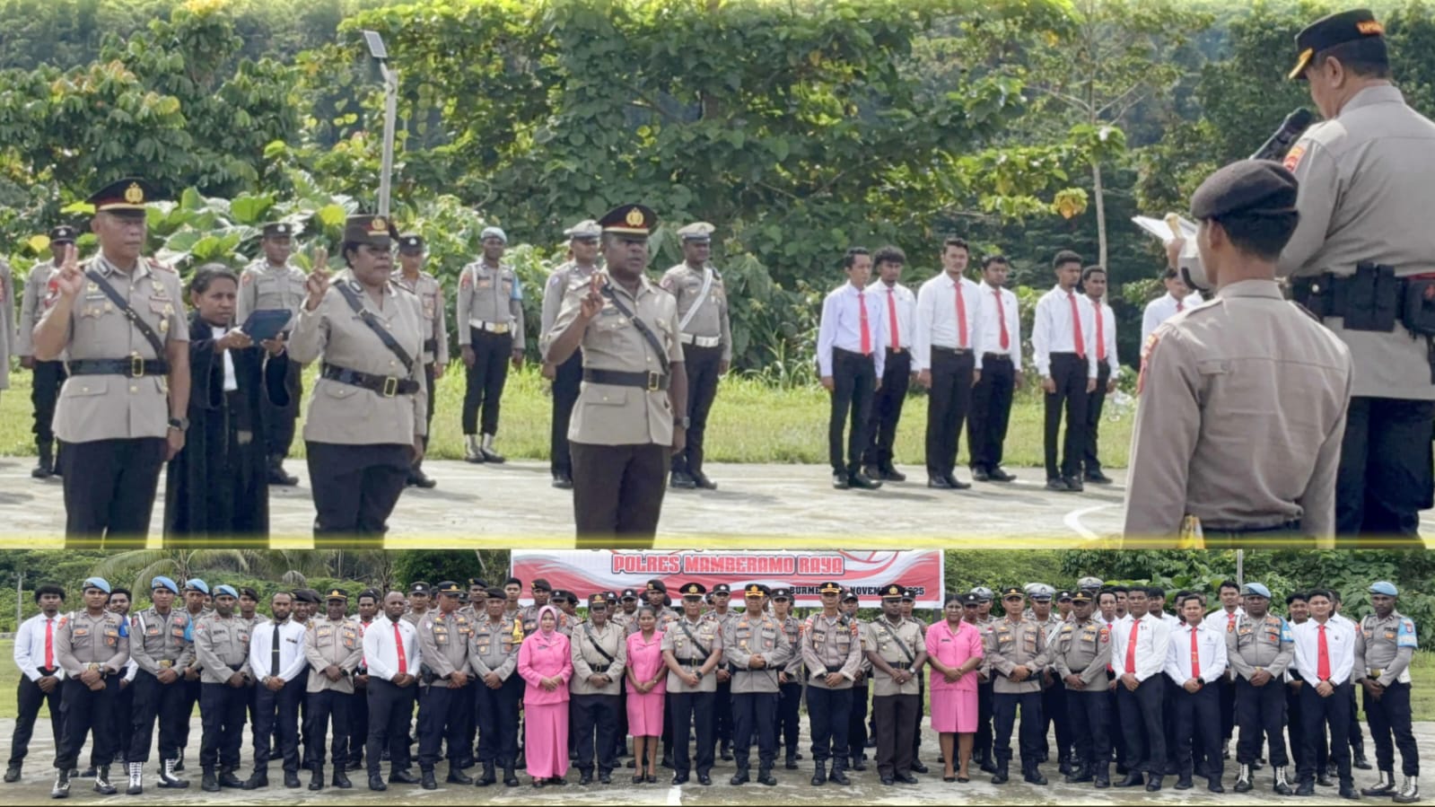 Burmeso – 02/12/25, Kapolres Mamberamo Raya AKBP. Arifin memimpin langsung jalannya upacara pengukuhan Jabatan Kabag Ops, Kabag SDM, Kasat Binmas dan Penyerahan Jabatan Kabag Ren Polres Mamberamo Raya yang dihadiri oleh Waka Polres Mamberamo Raya Kompol. Septen P. Sianturi, SH berserta Para PJU Polres Mamberamo Raya dan peserta upacara oleh seluruh anggota Polres Mamebramo Raya yang berjalan pada pukul 09.00 Wit.