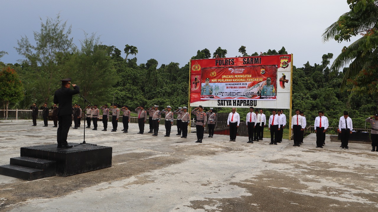 Sarmi – Kapolres Sarmi AKBP Ruben Palayukan, S.Pt., S.I.K memimpin langsung upacara peringatan Hari Pahlawan Nasional ke-80 di halaman Mapolres Sarmi, Senin (10/11/2025).