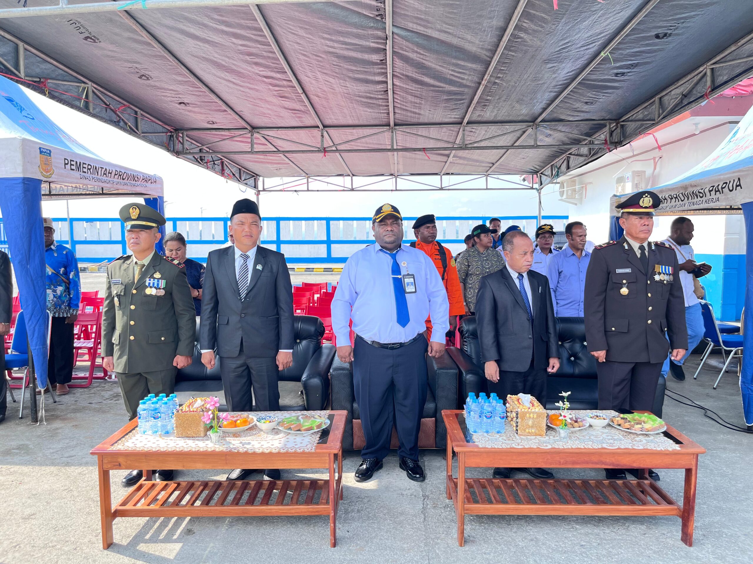 Sarmi – Kapolsek Sarmi Kota Iptu Suhartono, S.Sos., mewakili Kapolres Sarmi bersama personel Polres Sarmi mengikuti upacara peringatan Hari Perhubungan Nasional (Harhubnas) Tahun 2025 yang digelar di halaman Kantor UPP Kelas III/Pelabuhan Sarmi, Rabu (17/9/2025).