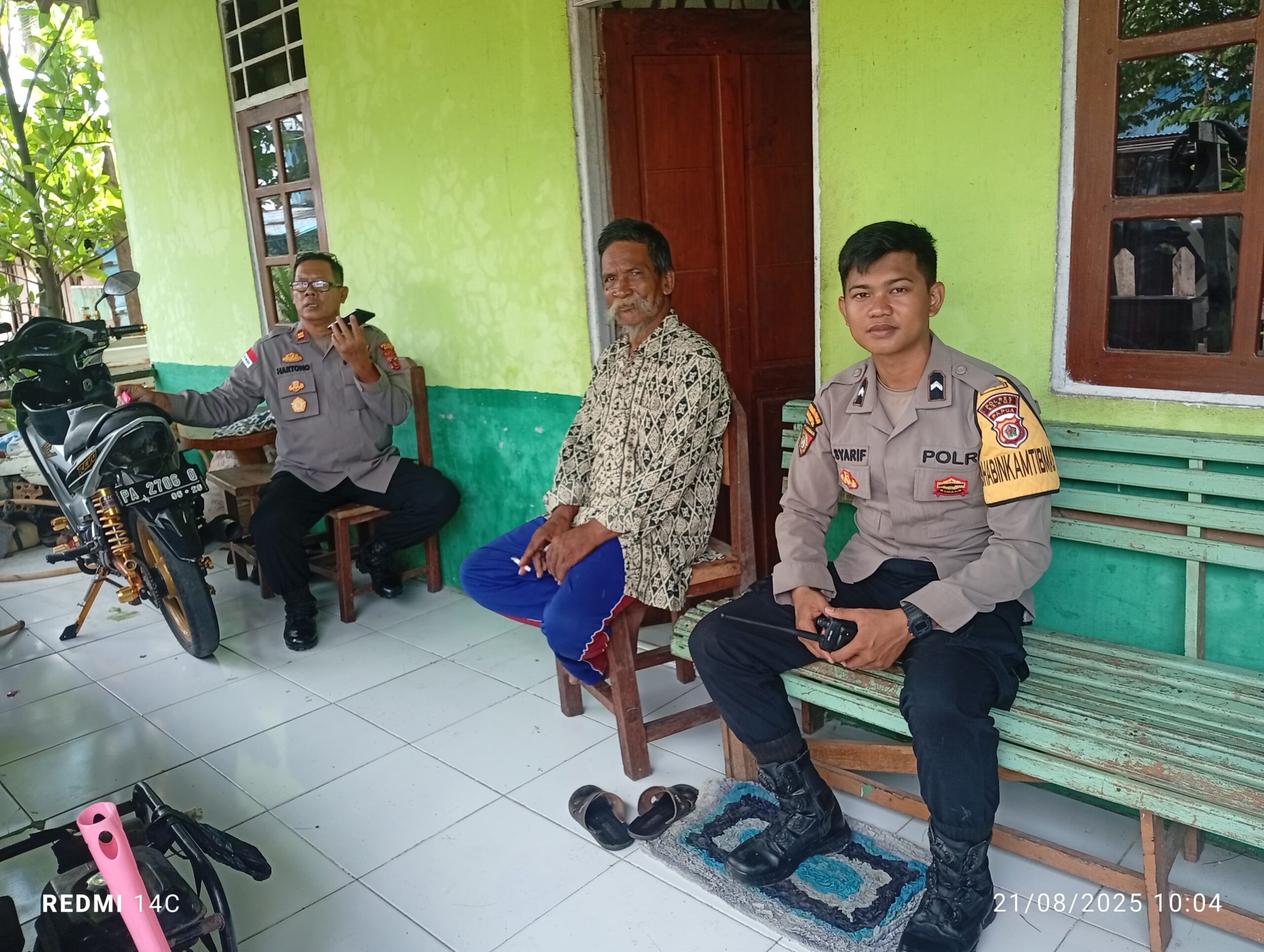 Sarmi – Dalam rangka mempererat hubungan silaturahmi dan menjaga keharmonisan antara polisi dengan masyarakat, Kapolsek Sarmi Kota, Iptu Suhartono s.sos melaksanakan kegiatan sambang warga di wilayah hukumnya, pada hari Kamis 21 Agustus 2025