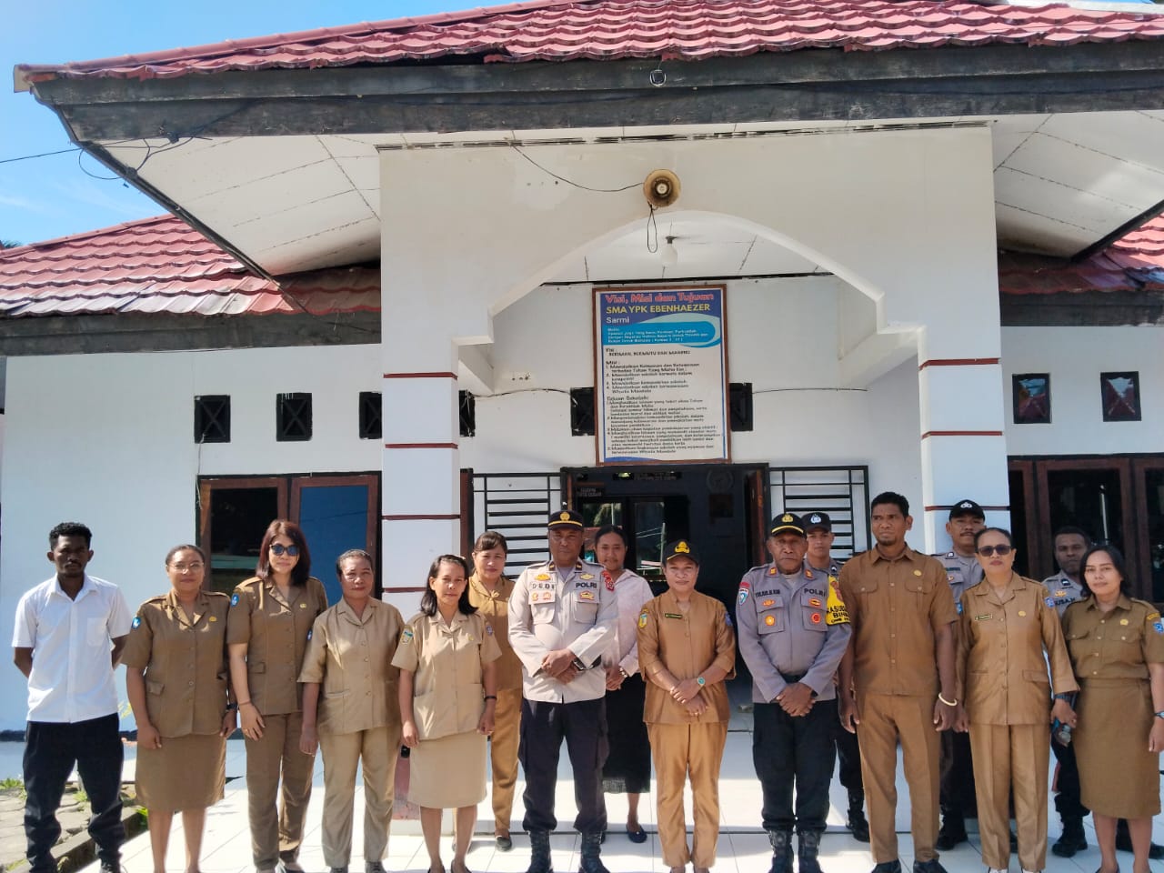 Sarmi – Kasat Binmas Polres Sarmi Akp Yulianus Mapeni, SE memimpin apel pagi sekaligus menjadi inspektur upacara bendera di SMA YPK Ebenheizer Sarmi, Senin (15/9/2025). Kegiatan ini bertujuan untuk memberikan pemahaman kepada para siswa dan siswi mengenai pentingnya menjauhi perilaku menyimpang di kalangan remaja.