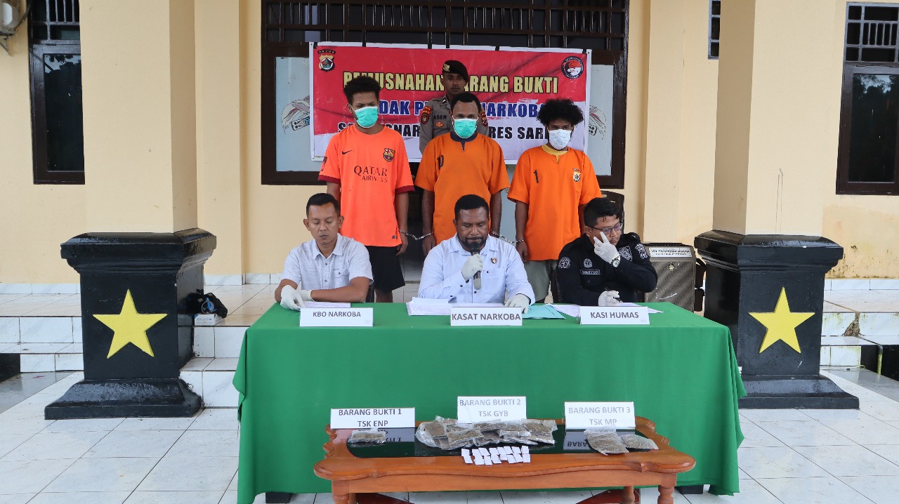 Kapolres Sarmi melalui Kasat Narkoba Polres Sarmi menegaskan bahwa pemusnahan barang bukti merupakan langkah penting guna memastikan barang sitaan tidak disalahgunakan selama proses penanganan perkara.
