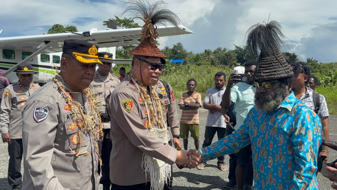 Kedatangan Waka Polda Papua Brigjend Pol. Dr. Faizal Ramadhani, S.Sos, S. Ik, MH bersama Rombongan dijemput langsung oleh Kapolres Mamberamo Raya AKBP Arifin beserta Para PJU Polres Mamberamo Raya, Danton Brimob BKO Polres Mamberamo Raya. Kapolsek Mamberamo Tengah serta Personel Brimob BKO dan Anggota Polres Mamberamo Raya. Turut serta Ketua Dewan Adat Kab. Mamberamo Raya Albert Bilasi dan Tim Tari Tarian Adat Kabupaten Mamberamo Raya yang mana Pukul 13.42 Wit Waka Polda Papua Brigjend Pol. Dr. Faizal Ramadhani, S.Sos, S. Ik, MH turun dari Pesawat pukul 13.42 Wit, diterima oleh Kapolres Mamberamo Raya AKBP Arifin di Lapangan Terbang Kasonaweja dan disambut dengan Tarian Adat Kabupaten Mamberamo Raya dan pengalungan serta Mahkota Adat oleh Ketua Dewan Adat Mamberamo Raya Albert Bilasi.