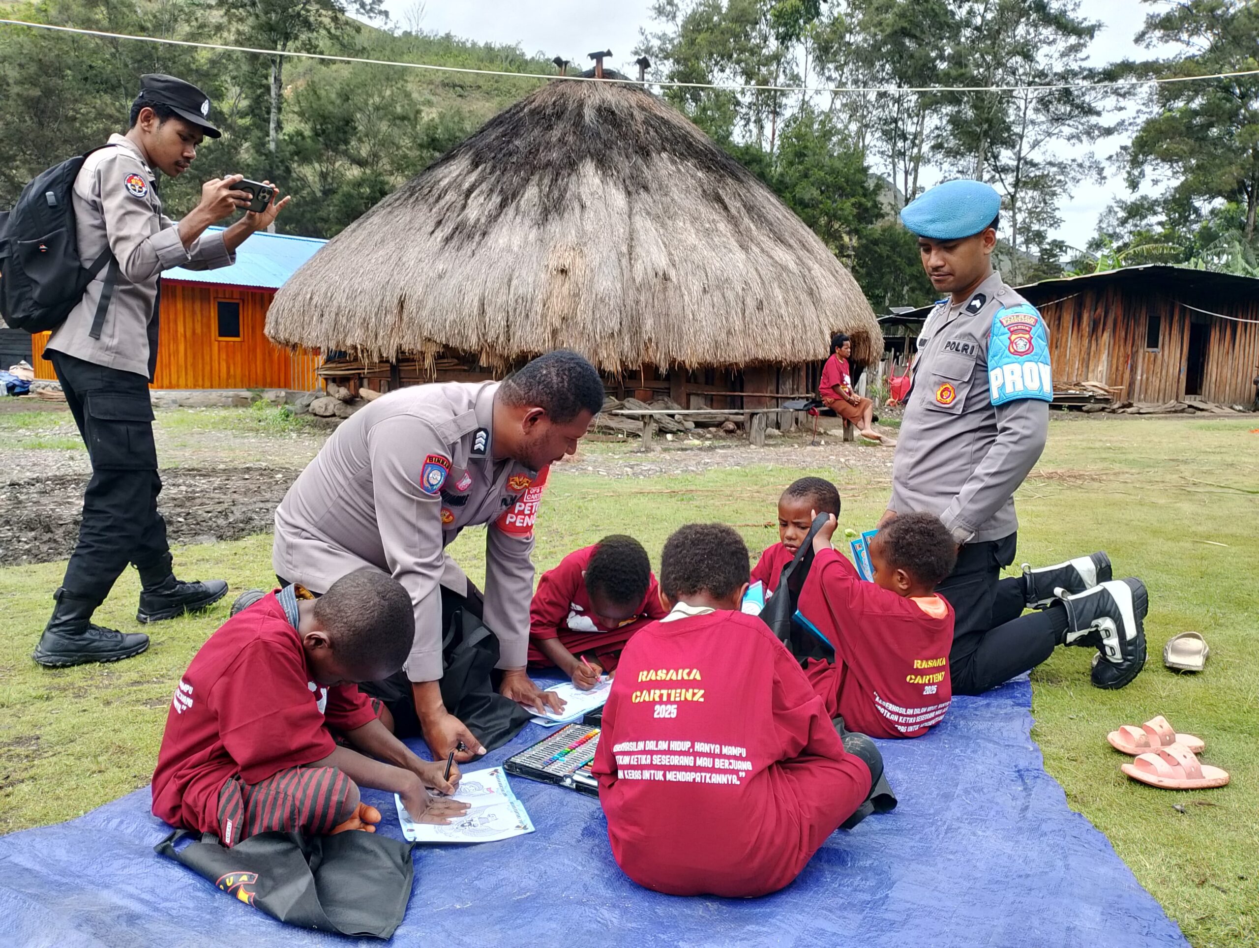 Suasana penuh keceriaan terlihat saat anak-anak mengikuti kegiatan dengan antusias. Melalui pendekatan yang humanis dan penuh kasih, personel Polri tidak hanya berperan sebagai pendidik, tetapi juga sebagai sahabat bagi anak-anak Kampung Yokobak.