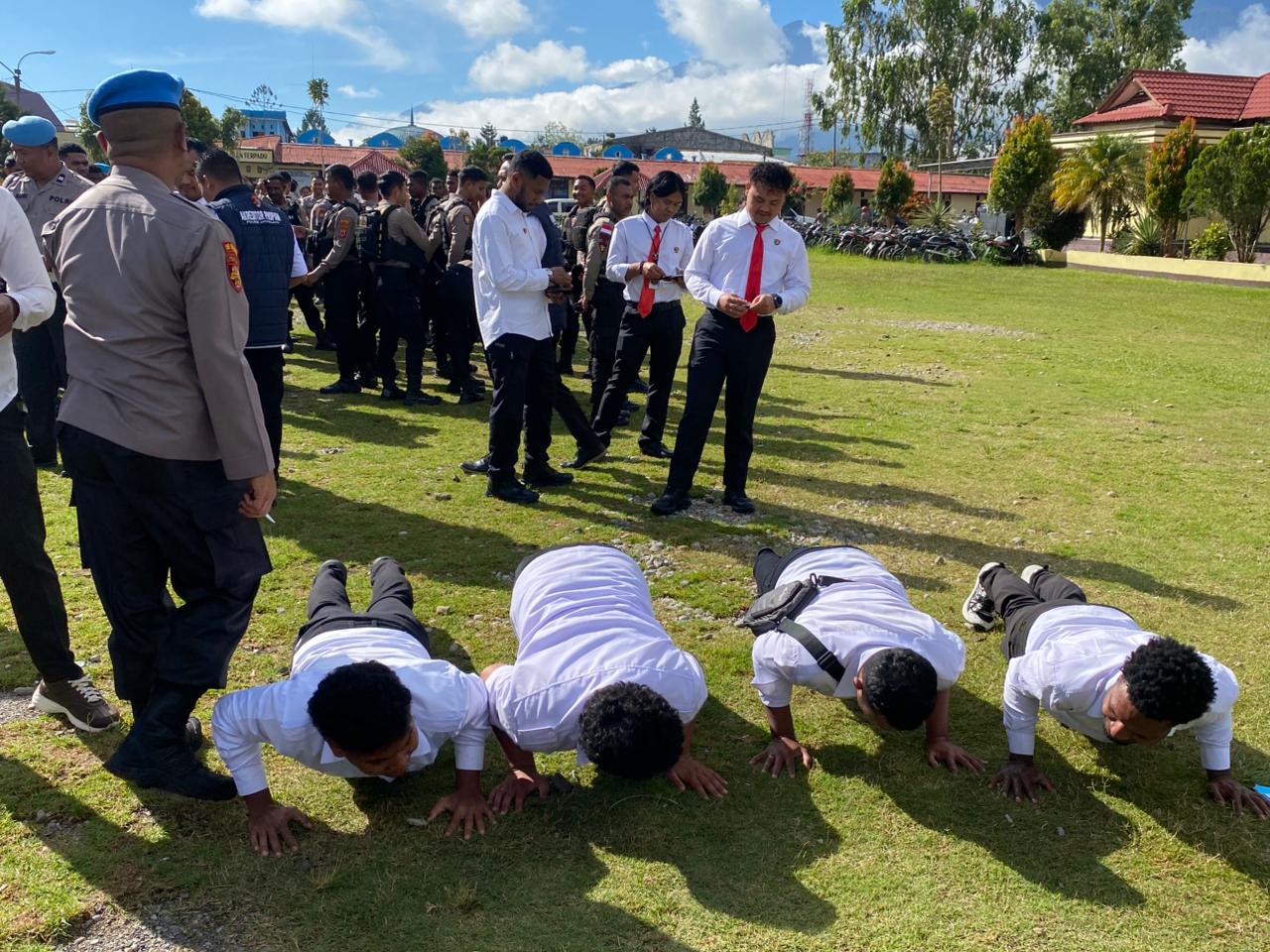 Terhadap pelanggaran tersebut, Propam Polres Jayawijaya mengambil tindakan tegas dan terukur berupa pengamanan kendaraan roda dua di BB Sie Propam, pemotongan rambut di tempat bagi personel yang tidak sesuai ketentuan, serta pemberian sanksi fisik berupa push up sebanyak 50 kali dan teguran untuk segera melengkapi identitas pribadi.