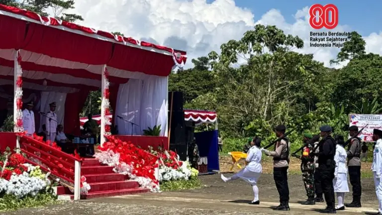Burmeso – 17/08/25, Kapolres Mamberamo Raya AKBP. ARIFIN yang didampingi oleh Waka Polres Mamberamo Raya Kompol. Septen P. Sianturi mengikuti pelaksanaan Hari Ulang Tahun Kemerdekaan Republik Indonesia Ke 80 tanggal 17 Agustus 2025 di lapangan upacara yang tepatnya di tegah kompleks perumahan Eselon Kabupaten Mamberamo Raya dengan melibatkan seluruh masyarakat dan Pemerintah Daerah Kabupaten Mamberamo Raya.