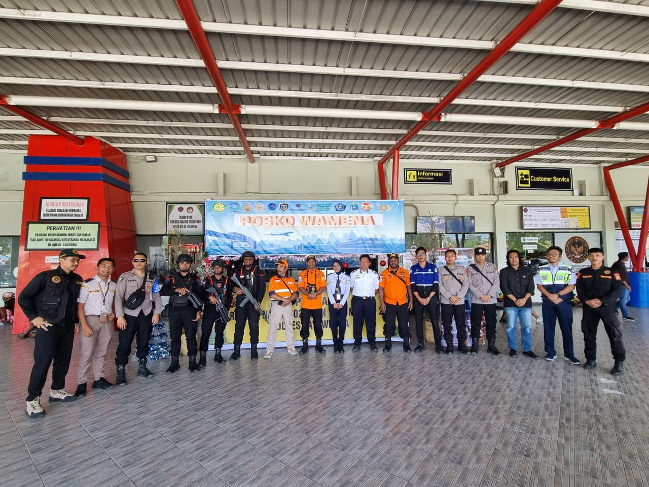 Jayawijaya – Personel Pos Pelayanan (Pos Yan) Regu II Polres Jayawijaya melaksanakan pengamanan aktivitas kedatangan dan keberangkatan penumpang di Bandar Udara Wamena dalam rangka Operasi Lilin Cartenz 2025, Rabu (31/12/2025).