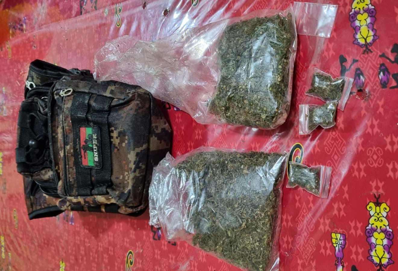 Dari hasil penggeledahan, petugas mengamankan barang bukti berupa satu buah tas samping warna loreng coklat bertuliskan “Sniper” dan ganja dengan total berat bruto ganja mencapai 101,62 gram.