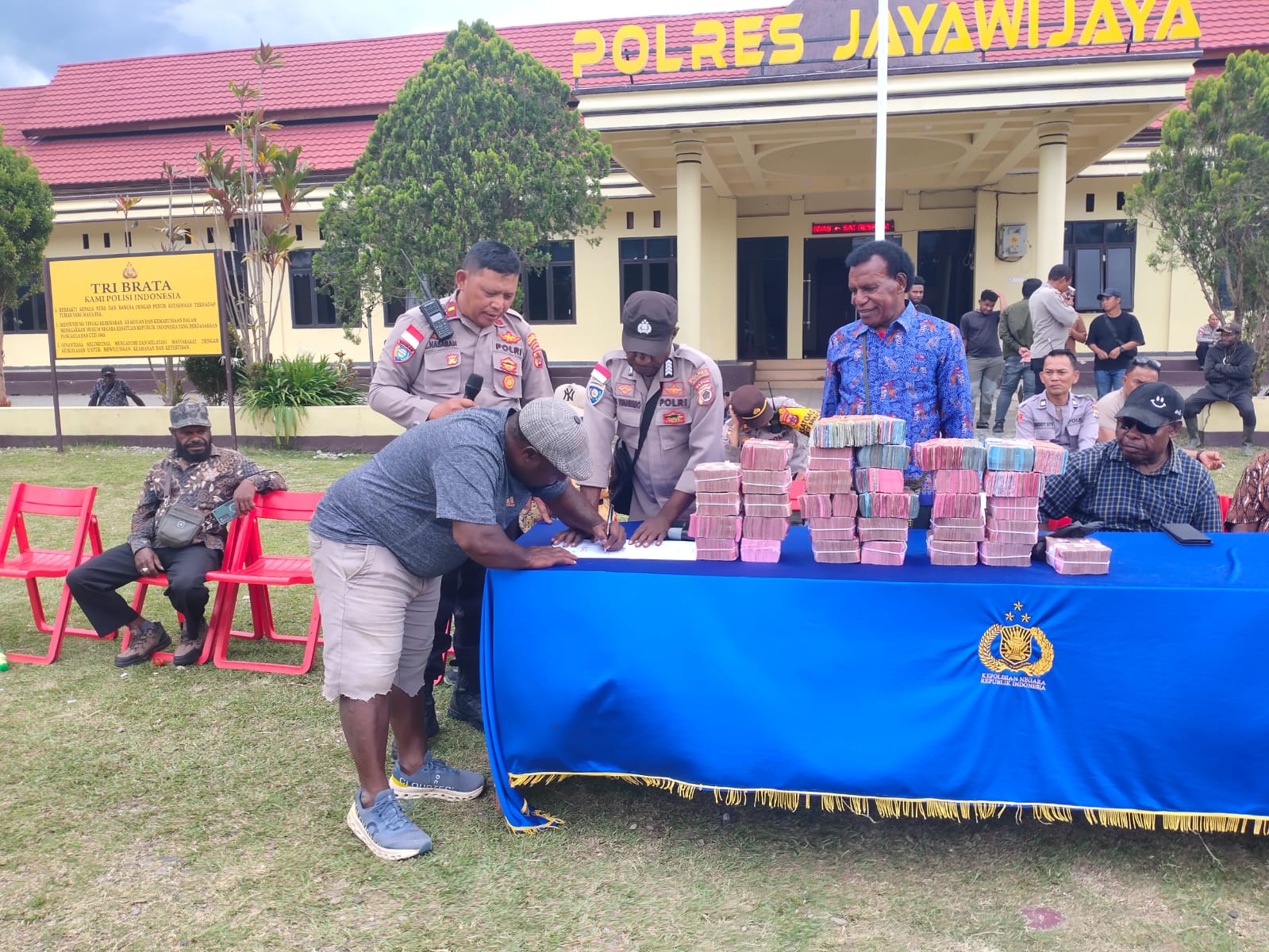 Wamena — Polres Jayawijaya memfasilitasi pelaksanaan mediasi final dan pembayaran denda adat pasca kasus pembunuhan almarhum Punika Wenda yang terjadi pada 20 Juli 2025. Kegiatan tersebut berlangsung pada Jumat, 30 Januari 2026, pukul 12.52 s.d. 15.10 WIT, bertempat di Mapolres Jayawijaya.