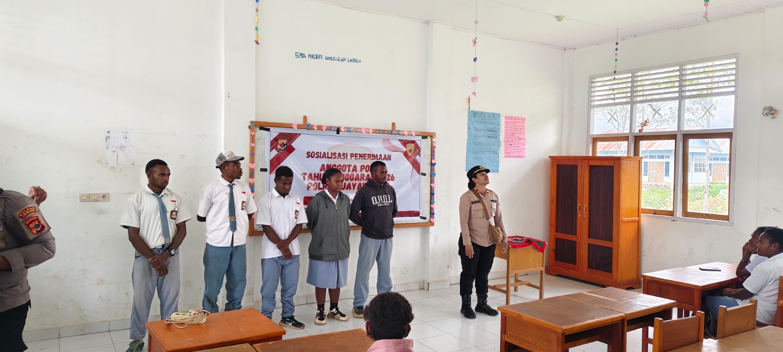Jayawijaya – Dalam rangka memberikan informasi kepada para pelajar mengenai peluang bergabung menjadi anggota Kepolisian Negara Republik Indonesia, Bagian Sumber Daya Manusia (SDM) Polres Jayawijaya melaksanakan sosialisasi penerimaan terpadu Polri Tahun Anggaran 2026, Selasa (10/03) di SMA Negeri Unggulan Lapago Wamena.