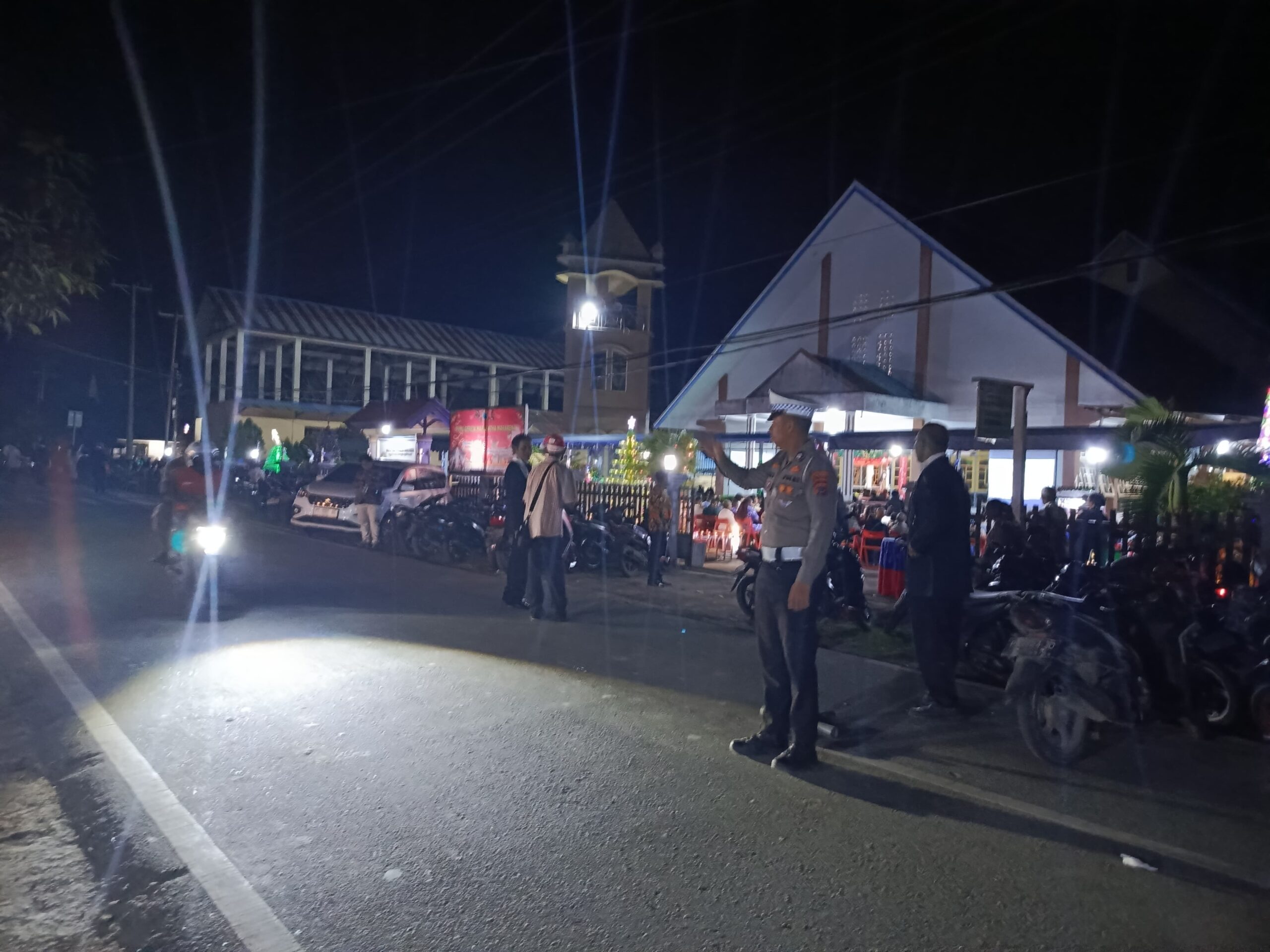Sarmi – Guna memastikan pelaksanaan ibadah Malam Kudus berjalan aman, tertib, dan khidmat, Polres Sarmi menurunkan personelnya untuk melaksanakan pengamanan di sejumlah gereja yang berada di wilayah Kabupaten Sarmi, Rabu (24/12/2025) malam.