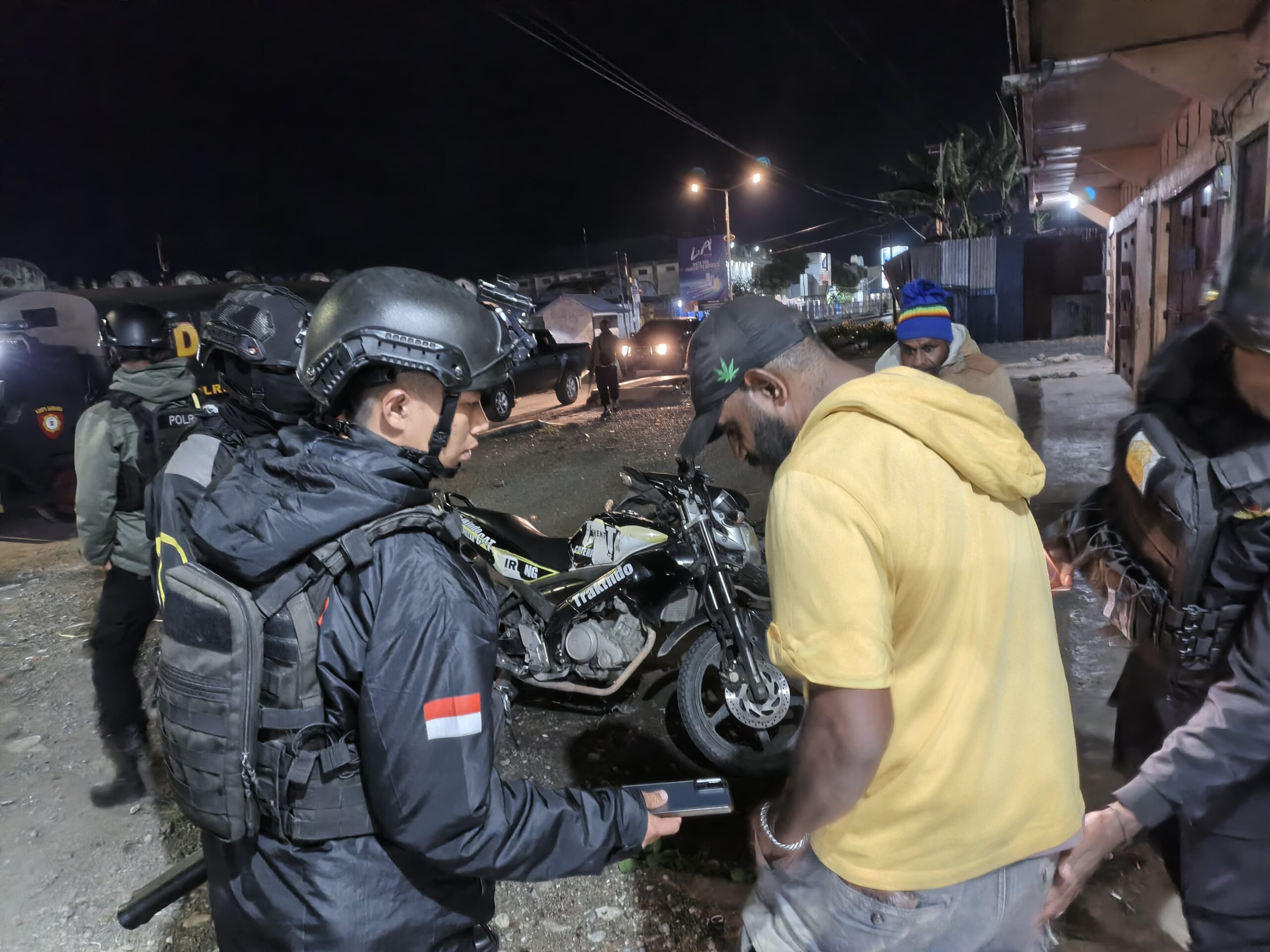 Pada sore hari, personel kembali melaksanakan patroli dan melakukan pemeriksaan terhadap sekelompok masyarakat yang berkumpul di Taman Kota Wamena. Dalam kegiatan tersebut, petugas mengamankan dan memusnahkan dua botol minuman keras lokal jenis CT (Cap Tikus).