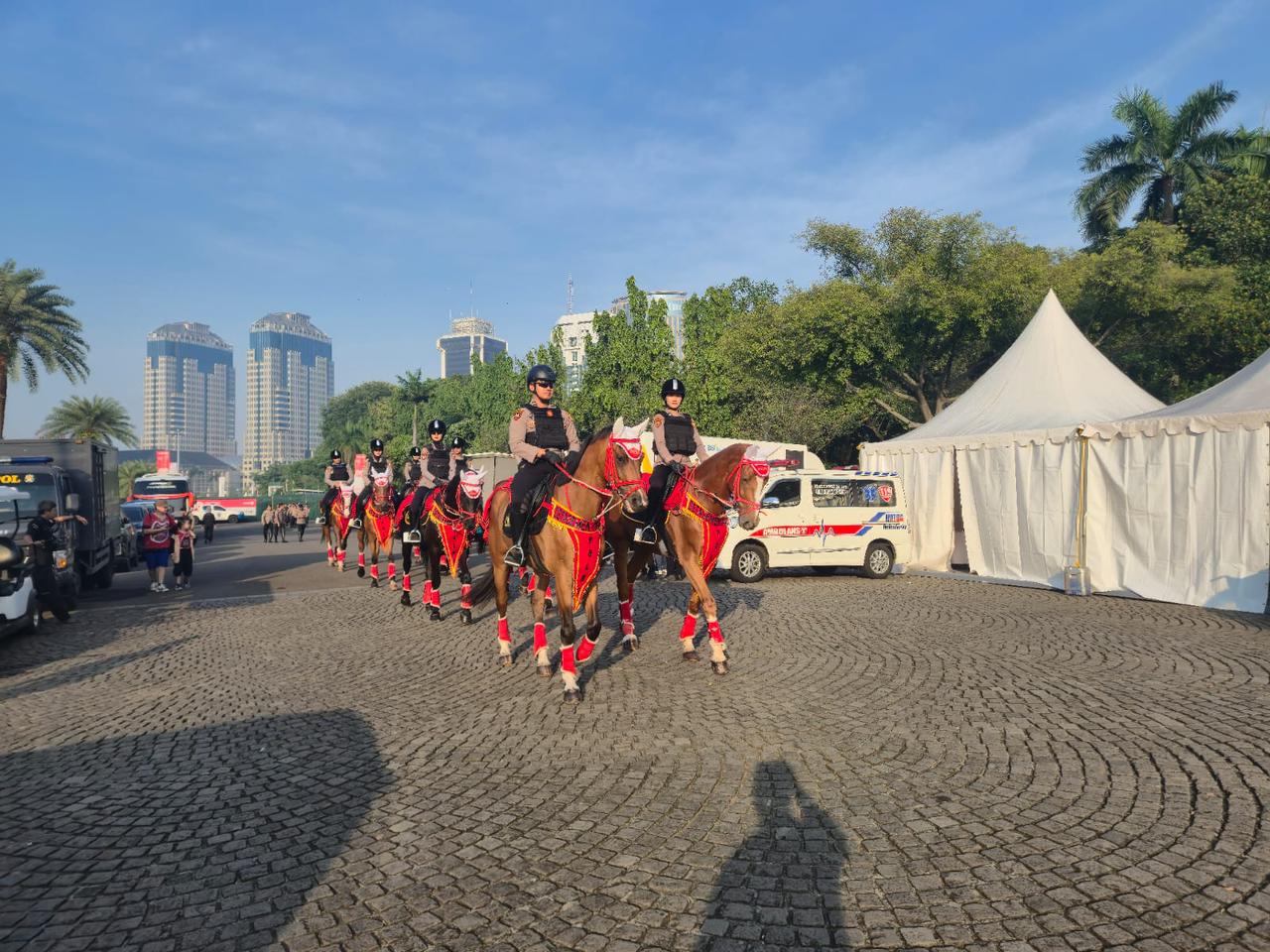 Sebanyak 10 ekor kuda dikerahkan dalam pengamanan kali ini. Dari jumlah tersebut, 8 ekor ditempatkan di area Monas, sementara 2 ekor lainnya berada di kawasan Bundaran Hotel Indonesia (HI).
