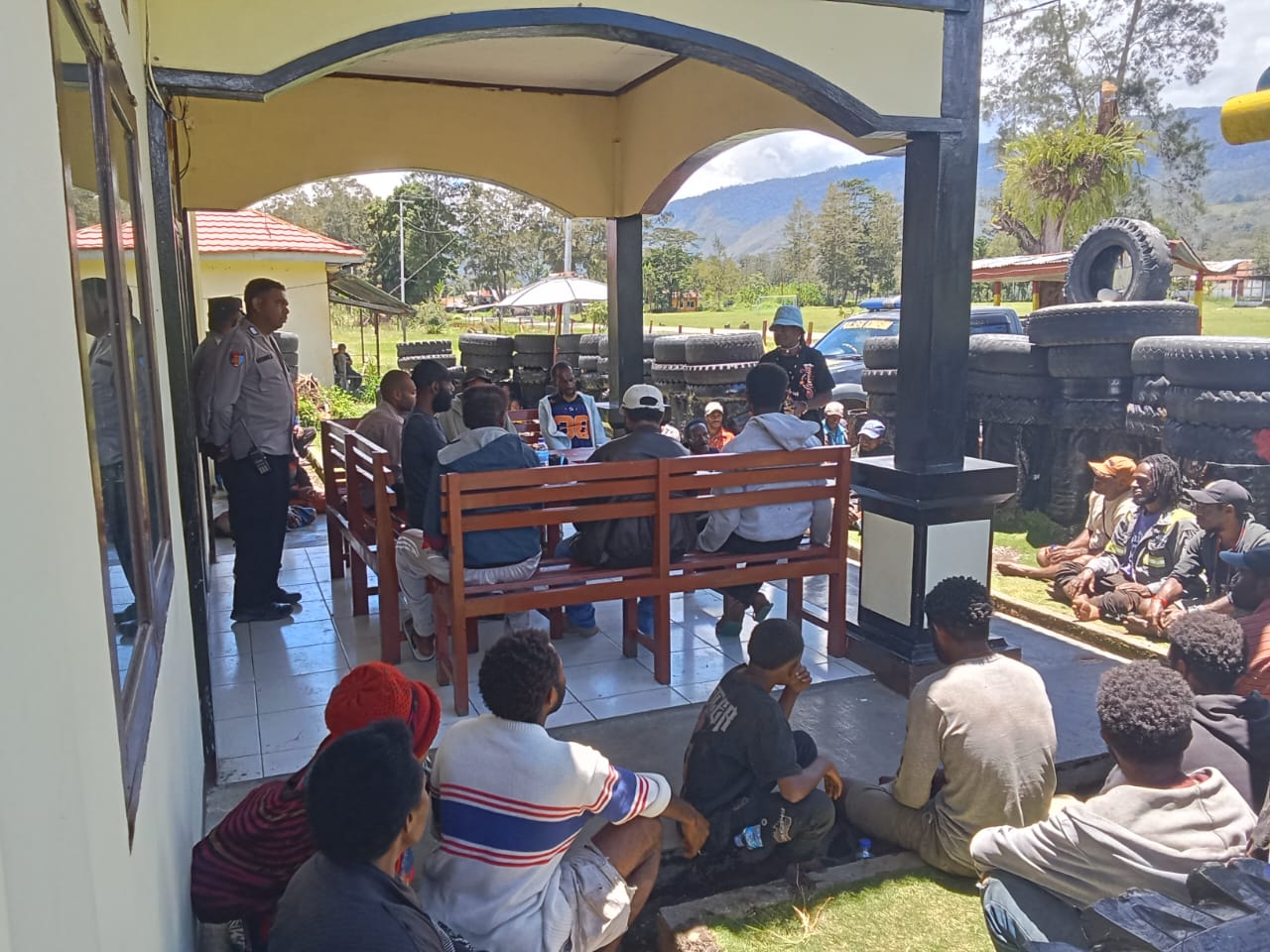 Jayawijaya – Polsek Asologaima jajaran Polres Jayawijaya memfasilitasi mediasi penyelesaian perkara kecelakaan lalu lintas (laka lantas) yang terjadi di Kampung Tikao, Distrik Asologaima, Kabupaten Jayawijaya, Kamis (26/2), di halaman mapolsek Asologaima.