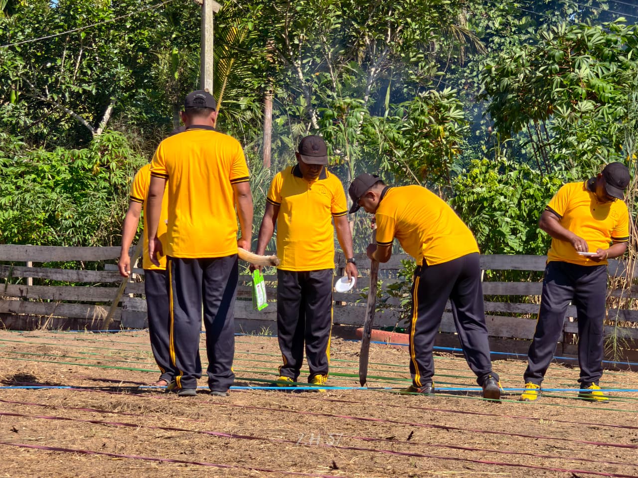 Sebelum kegiatan penanaman dilakukan, pada Kamis (2/10/25), personel telah melakukan pengukuran jarak tanam dengan menggunakan tali rafia, dengan jarak antar lubang 1 meter x 60 cm. Hal ini dilakukan agar pola tanam lebih rapi dan pertumbuhan jagung bisa maksimal.