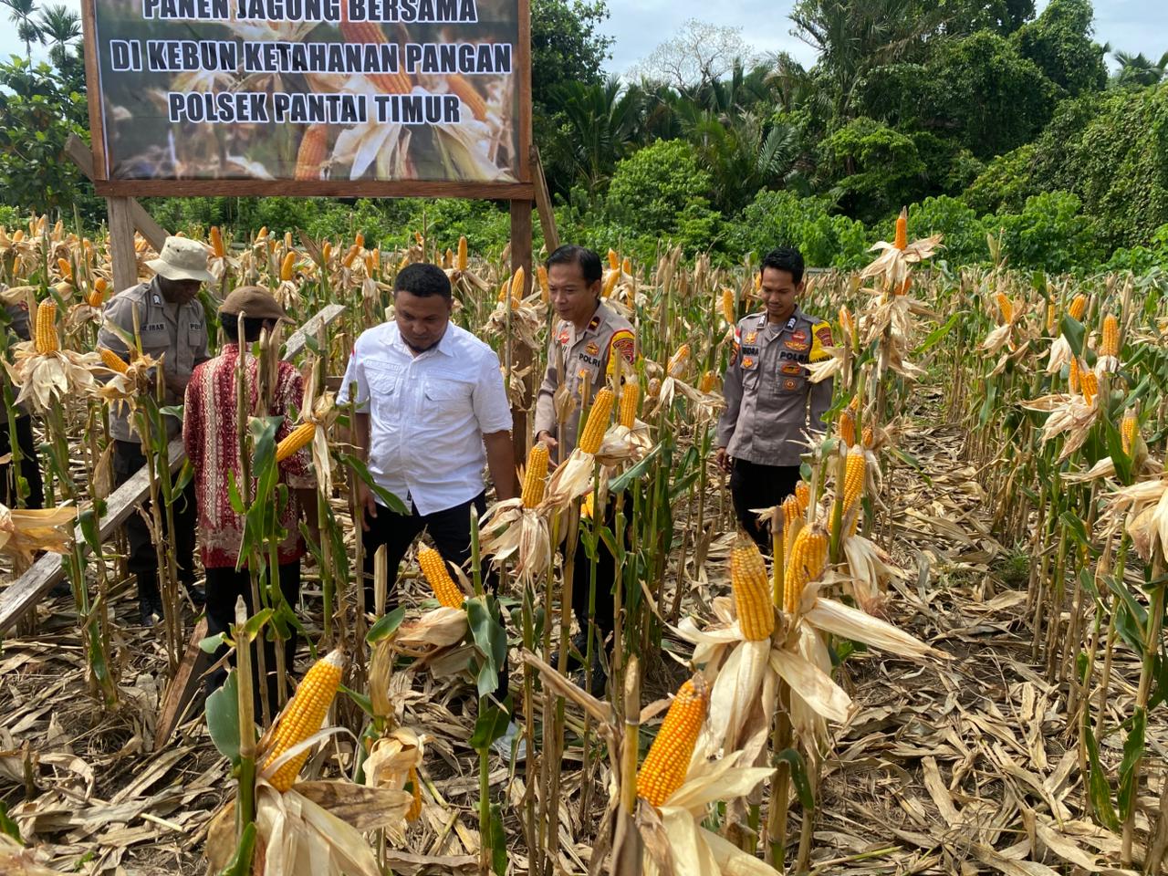 Polsek Pantai Timur Panen Jagung di Lahan Ketahanan Pangan Bersama Masyarakat