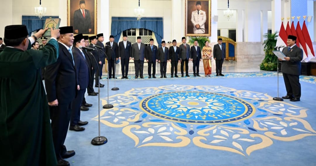 Dalam kesempatan tersebut, Presiden Prabowo mengambil sumpah jabatan para menteri dan wakil menteri yang dilantik.