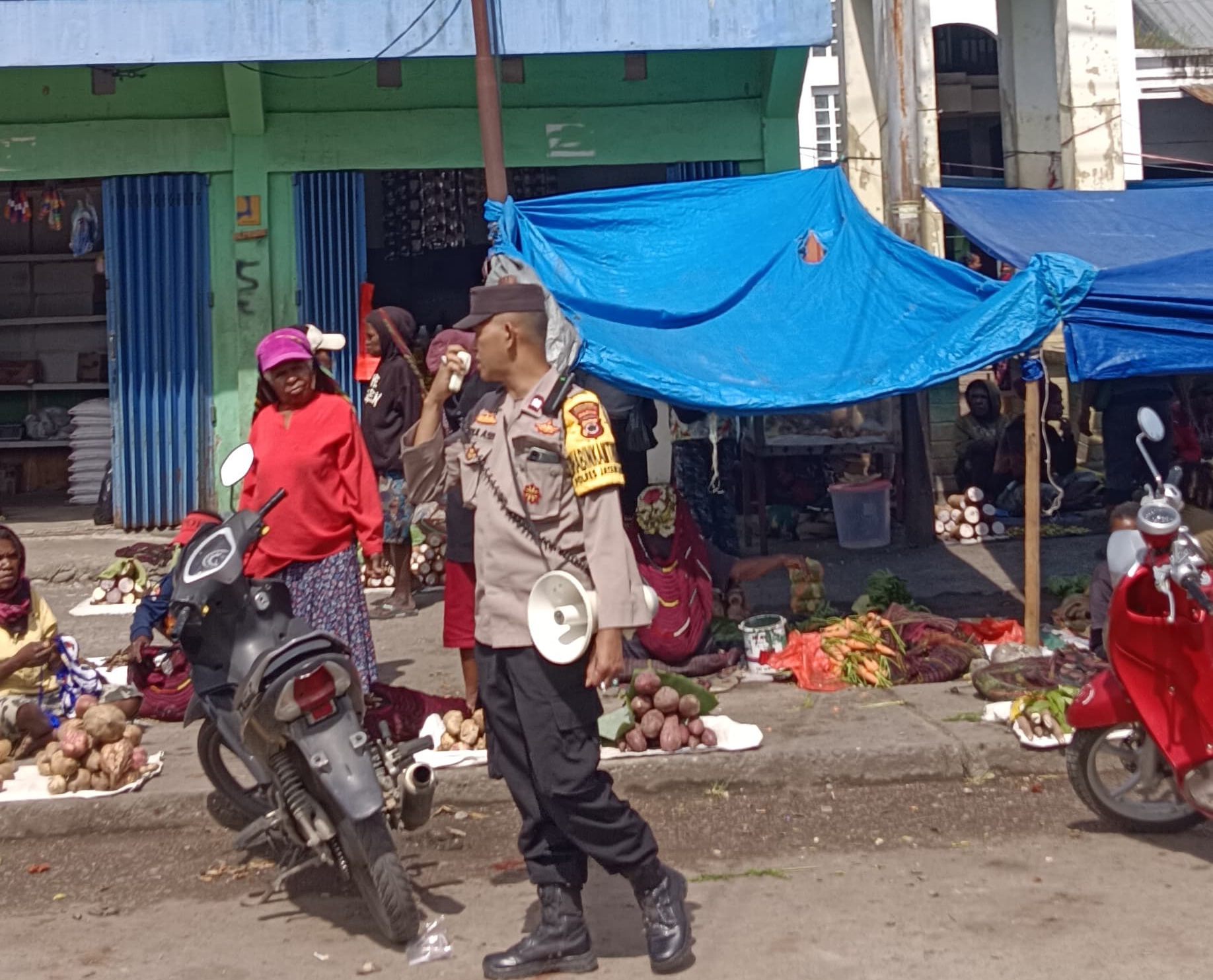 Kegiatan yang dipimpin Wakapolsek Wamena Kota Ipda Lambok Ari Nababan bersama personel ini menyambangi kawasan Pasar Potikelek dan Pasar Misi (Woma) yang merupakan pusat aktivitas masyarakat.