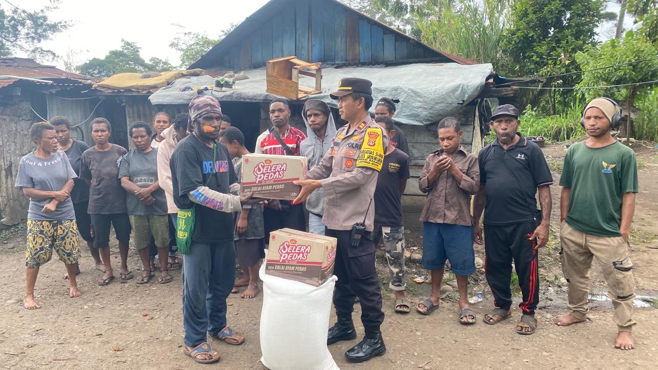 Sekitar pukul 13.00 WIT, Kasat Binmas mengunjungi Ketua Komunitas Remaja di Wamena, Alias Wenda, beserta sejumlah anak binaan. Dalam pertemuan yang berlangsung hangat itu, personel Binmas menyampaikan himbauan terkait keamanan dan ketertiban masyarakat (kamtibmas), sekaligus menyerahkan bantuan sebagai wujud kepedulian Polri kepada sesama.
