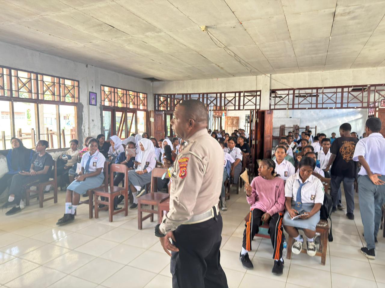 Kegiatan ini dipimpin langsung oleh Kanit Binops (KBO) Lantas Polres Sarmi, Ipda Mulyadi, S.Sos, bersama personel Sat Lantas lainnya. Sosialisasi tersebut bertujuan memberikan edukasi dan pemahaman kepada para pelajar tentang pentingnya keselamatan dalam berlalu lintas, tata cara berkendara yang baik dan benar, serta pencegahan terhadap berbagai bentuk pelanggaran lalu lintas yang dapat berpotensi menimbulkan kecelakaan di jalan raya.