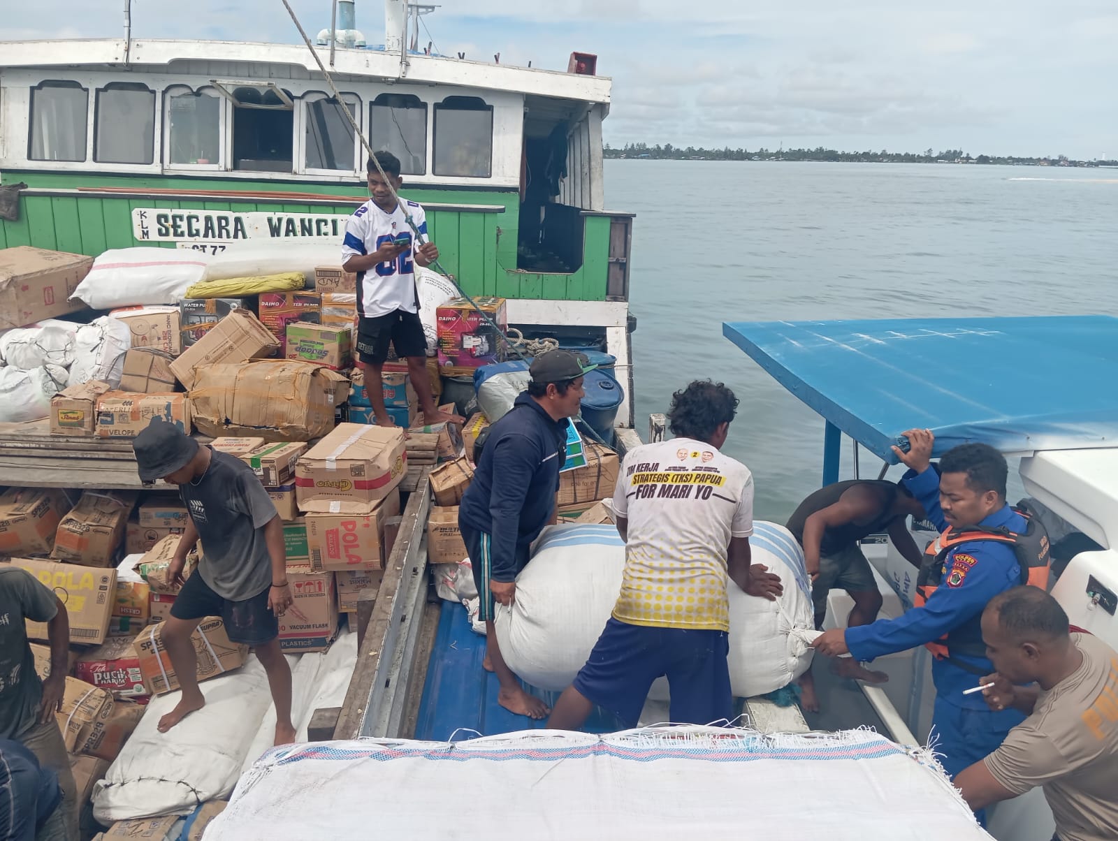 Sarmi – Anggota Satuan Kepolisian Perairan dan Udara (Sat Polairud) Polres Sarmi membantu mengevakuasi sejumlah barang sembako milik warga Mamberamo setelah kapal KLM Segara Wangi yang memuat barang tersebut mengalami kerusakan mesin di wilayah perairan Sarmi. Kamis (04/12/2025).