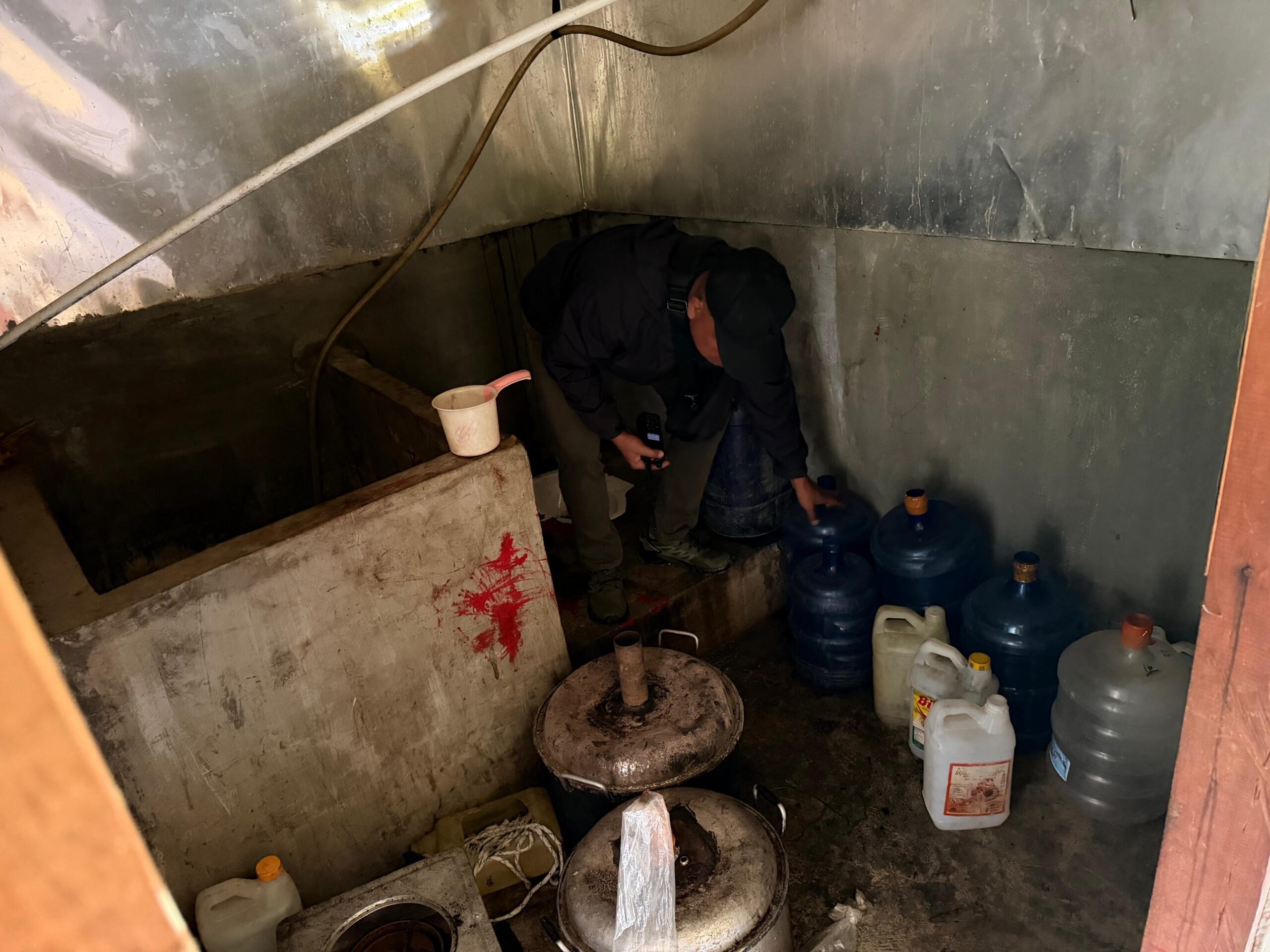 Petugas mendapati di lokasi sebuah rumah yang diduga menjadi tempat produksi minuman keras lokal jenis cap tikus (CT). Setelah dilakukan pengecekan, personel menemukan sejumlah barang bukti berupa peralatan pendukung produksi miras yang digunakan untuk proses penyulingan.