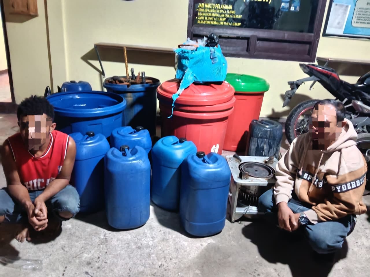 Dari hasil penyelidikan, petugas memperoleh informasi terkait sebuah rumah yang diduga menjadi lokasi produksi minuman keras ilegal. Setelah memastikan situasi aman, personel memasuki rumah tersebut dan menemukan seorang pria berinisial I.W (40) yang sedang melakukan proses pembuatan minuman keras Cap Tikus. Yang bersangkutan kemudian diamankan untuk pemeriksaan lebih lanjut.