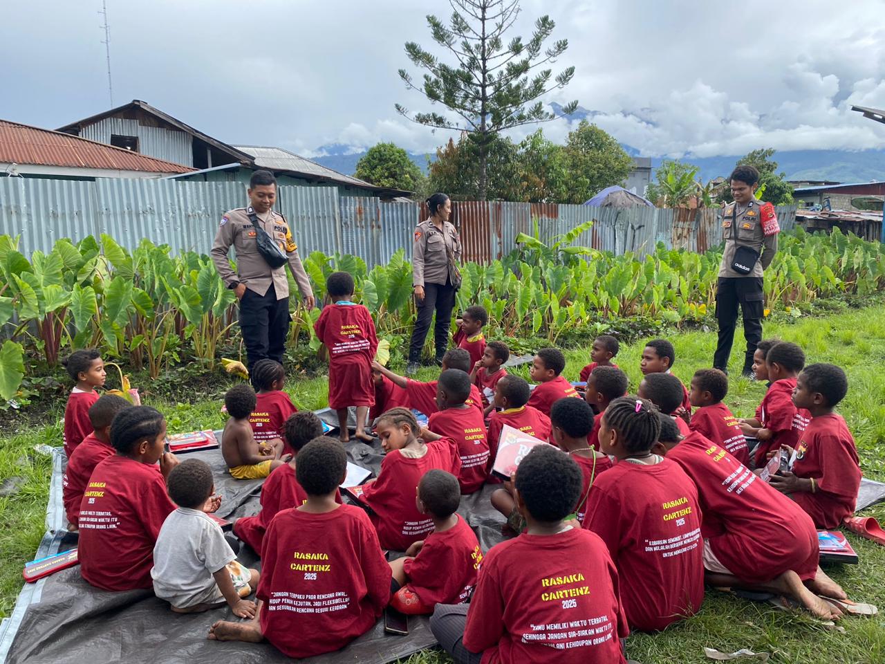 Jayawijaya – Satgas SI-IPAR Polres Jayawijaya kembali melaksanakan kegiatan “Polisi Pi Ajar” sebagai bagian dari komitmen Polri dalam mendukung pendidikan anak-anak putus sekolah di Kabupaten Jayawijaya. Kegiatan berlangsung di halaman rumah warga atas nama Bapak Fredi Wenda, Jalan Bhayangkara, Jayawijaya. Kamis, (20/11) Siang.