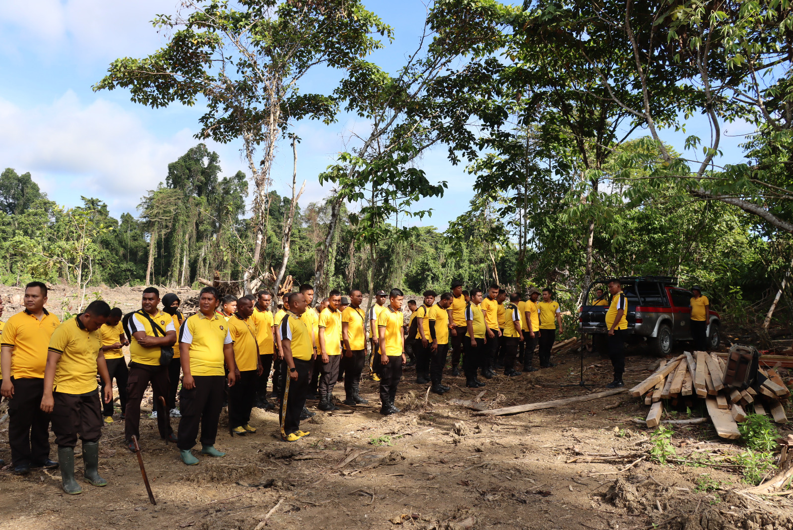 Sarmi – Dalam rangka mendukung program ketahanan pangan nasional, Kapolres Sarmi AKBP Ruben Palayukan, S.Pt., S.I.K. bersama para Pejabat Utama (PJU) dan personel Polres Sarmi melaksanakan kegiatan pembersihan lahan ketahanan pangan milik Polres Sarmi yang terletak di wilayah Kabupaten Sarmi, Jumat (7/11/2025).