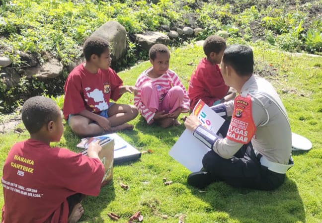 Lanny Jaya – Dalam rangka mendukung peningkatan kualitas pendidikan anak usia dini di wilayah pegunungan Papua, personel Subsatgas SI-IPAR Operasi Rasaka Cartenz 2025 Polres Lanny Jaya kembali melaksanakan kegiatan pembelajaran bagi anak-anak di Kampung Yokobak, Kabupaten Lanny Jaya, pada Kamis 2 Oktober 2025 pukul 14.00 WIT.