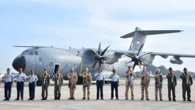Jakarta – Tradisi water salute menandai kedatangan pesawat Airbus A400M/MRTT pertama Indonesia di Lanud Halim…