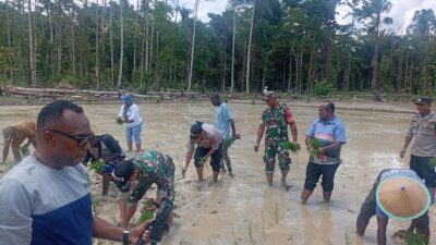 Kabag SDM Polres Sarmi Hadiri Penanaman Padi Bersama Bupati