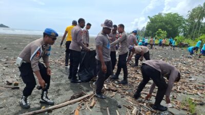 Kapolres dan Dandim Sarmi Pimpin Aksi Bersih Pantai Peringati HUT ke-62 Korem 172/PWY