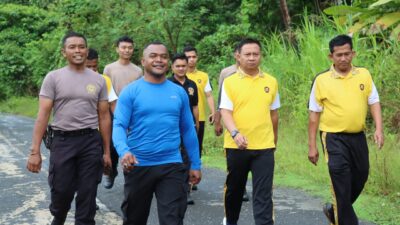 Kapolres Sarmi Bersama Anggota Laksanakan Olahraga Pagi dengan Jalan Kaki di Sekitar Mako Polres Sarmi