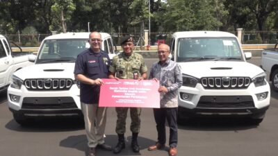 Kementerian Pertahanan menerima hibah empat unit kendaraan Scorpio Vigar dari PT Agrinas Pangan Nusantara