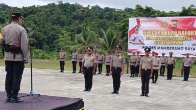 Pelaksanaan Upacara Korps Raport Perwira dan Bintara di Polres Mamberamo Raya