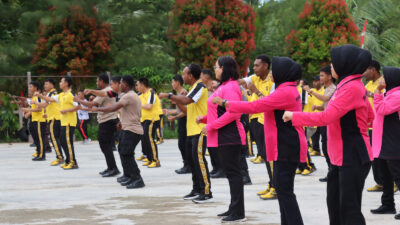 Personel Polres Sarmi dan Bhayangkari Gelar Senam Pagi Bersama