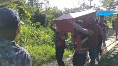 Personil Pos Shelter Sat Samapta Polres Sarmi Bantu Proses Pemakaman Warga Serwar Baru