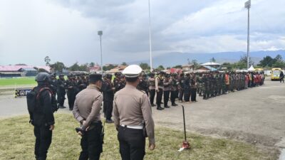 Jayawijaya – Personel Polres Jayawijaya melaksanakan kegiatan pengamanan pertandingan sepak bola Liga 4 yang berlangsung…