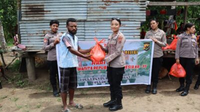 Polwan Polres Sarmi Gelar Bakti Sosial Bagikan Sembako Kepada Warga