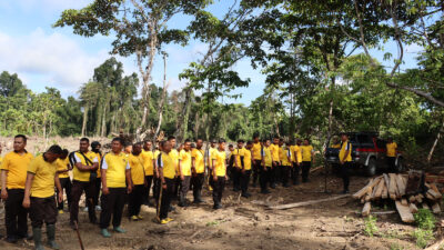 Semangat Gotong Royong! Kapolres Sarmi Pimpin Personel Bersihkan Lahan Ketahanan Pangan