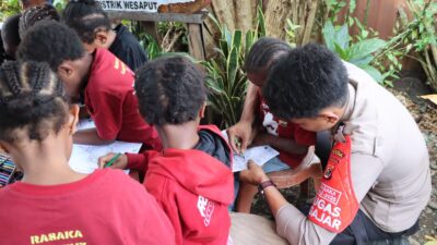 Subsatgas SI IPAR Operasi Rasaka Cartenz 2025 Ajak Anak-anak di Kampung Walani Belajar Sambil Bermain